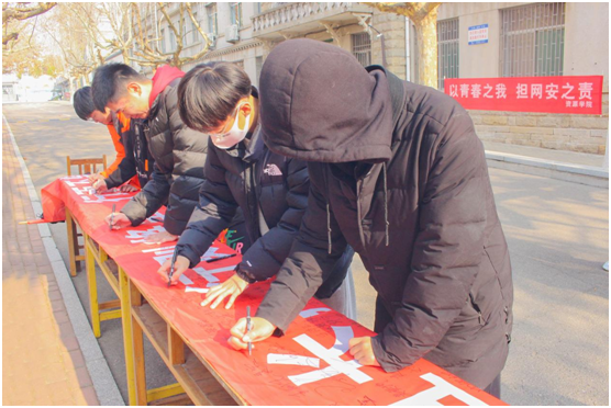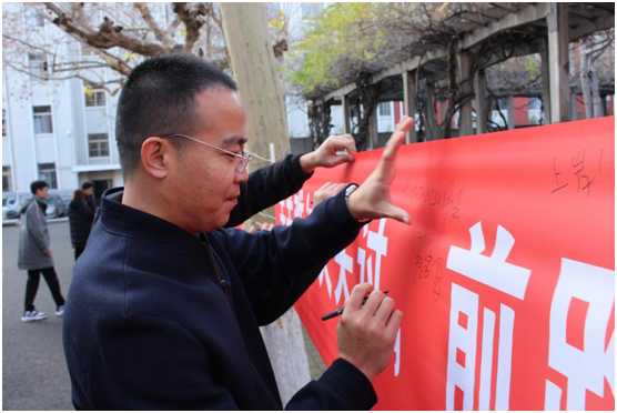 “道阻且长,行则将至”“以梦为马,不负韶华”“天道酬勤不负众望,锦鲤附体满载而归”……林荫道、行路旁,一句句祝福印在横幅,更映在心中。资源师生为考研学子条幅签名,将无限祝福浓缩镶刻在字里行间。
