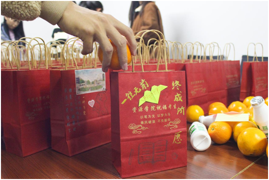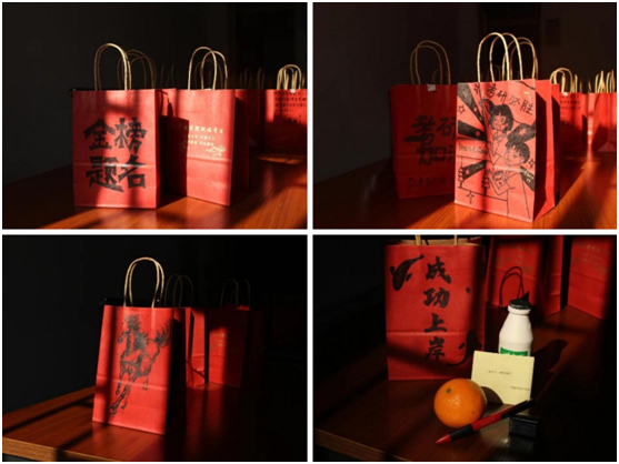 苹果寓意“苹”安上岸,橙子代表心想事“橙”,文具套装助力下笔有神,暖宝宝驱散严寒,祝福卡片承载来自全院师生的殷殷心意,牛奶帮助同学们开启元气满满的每天……从前期礼物设计、挑选,到后期福袋制作、打包,英国上市公司365师生长情谋划,精心准备,力求将最真挚的祝福送到每一位考研学子的心中。