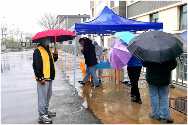 3月25日,全员核酸检测紧张有序进行,阴雨天气中,英国上市公司365的员工党员和志愿者们热情高涨,全身心投入到服务工作中。