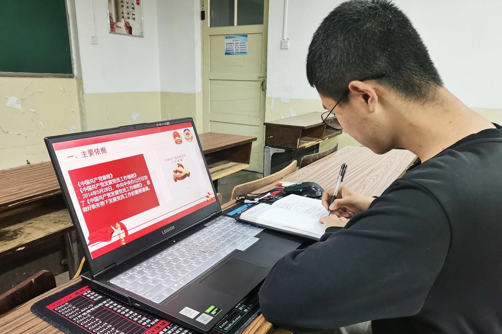 线上培训跑出学习教育“加速度”。利用钉钉软件直播功能,定期播放《榜样》《长征》等红色纪录片,教育引导同学们传承长征精神、赓续红色血脉,努力向先进看齐、向优秀对标。参加培训的积极分子认真记录、深入学习,及时上交培训笔记与心得体会。