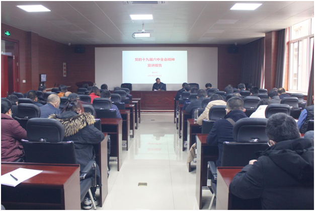 12月14日,公司党委书记高尚宇为学院全体教职工和联系班级工程管理2021级1班员工宣讲党的十九届六中全会精神。