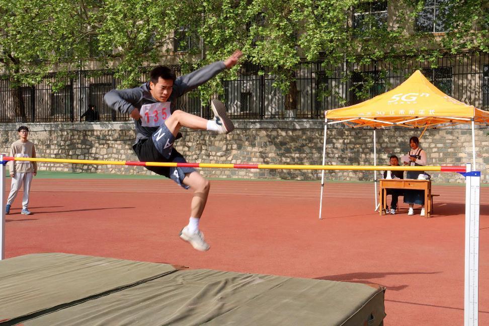 在跳高比赛中,学院选手在裁判的指引下依次上场,快速助跑、单脚起跳、腾空过杆、完美落地,动作一气呵成。经过激烈的比拼,防灾减灾2022-2班周潇琳、工程管理2021-6班满亚分别取得女子甲、乙组跳高第一名的好成绩。