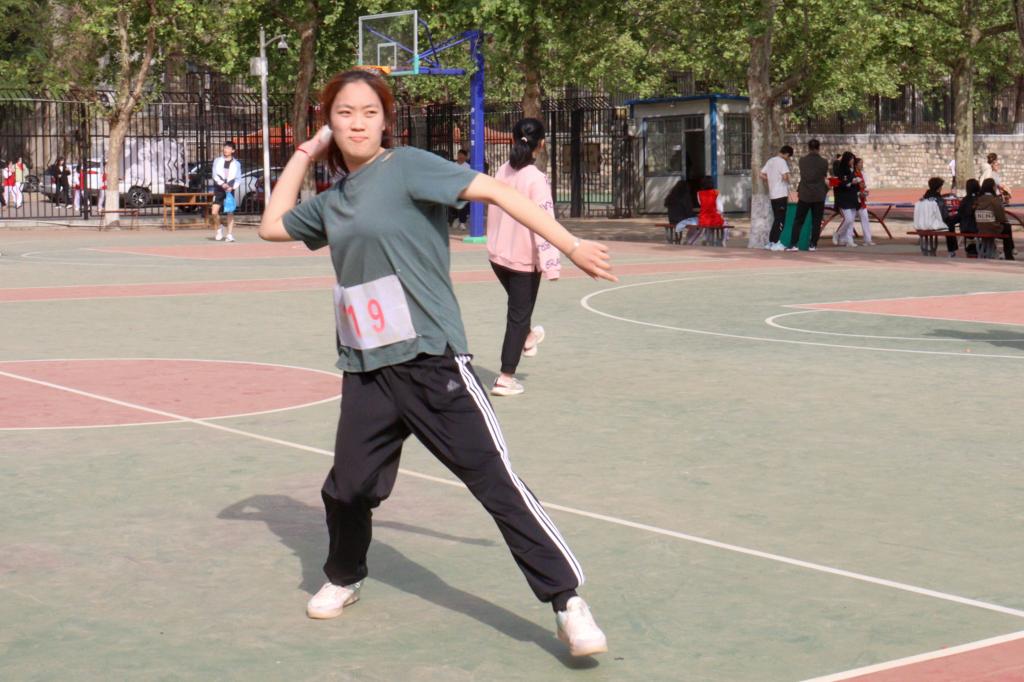 在铅球决赛中,选手准备充分、动作标准,铅球在空中画出完美的弧线。最终,防灾减灾2022-3班张宏伟获得男子甲组铅球赛第一名。