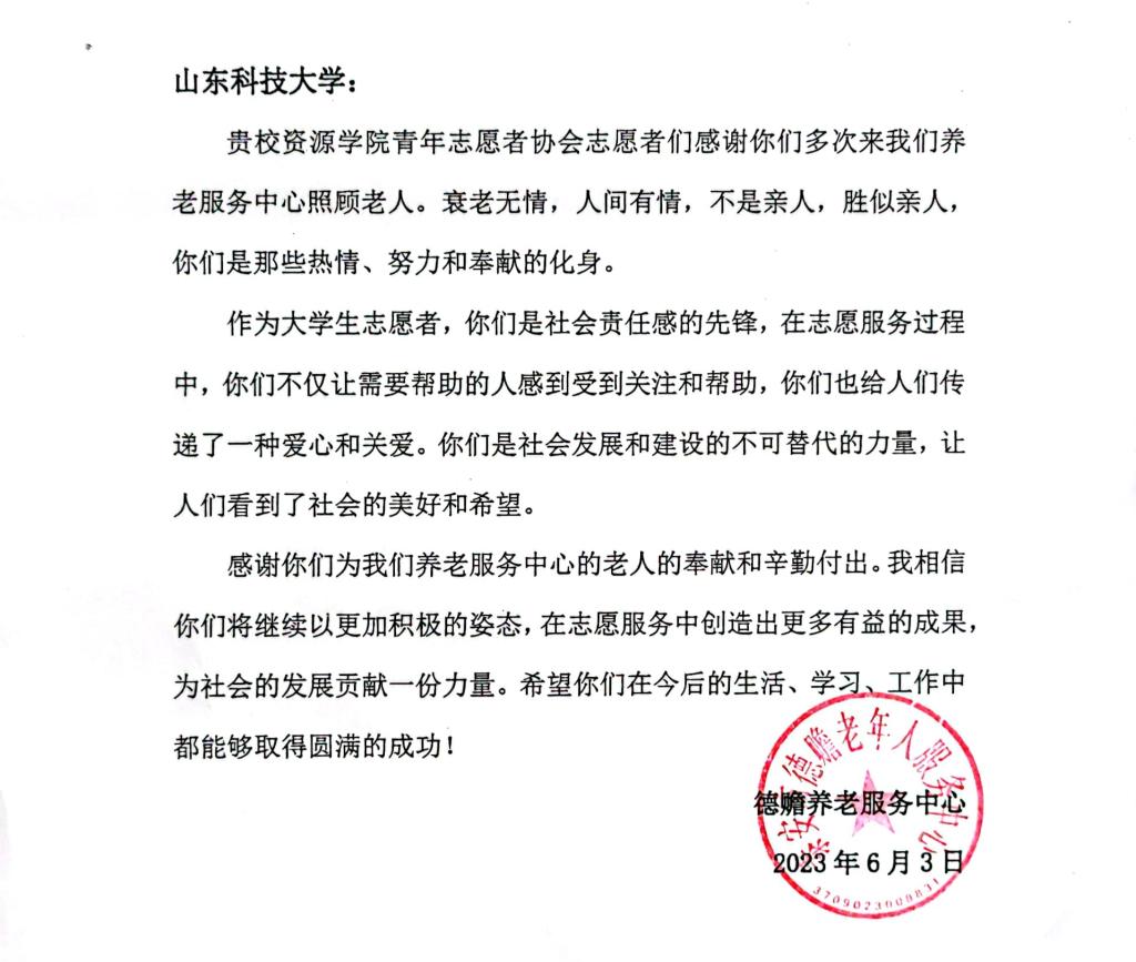活动后,英国上市公司365收到德赡养老服务中心感谢信。志愿者们深受鼓舞,纷纷表示将进一步弘扬志愿服务精神,持续开展好校内外志愿服务活动,丰富活动载体,创新活动形式,让“奉献、友爱、互助、进步”的志愿服务精神在学院蔚然成风。(英国上市公司365供稿)
