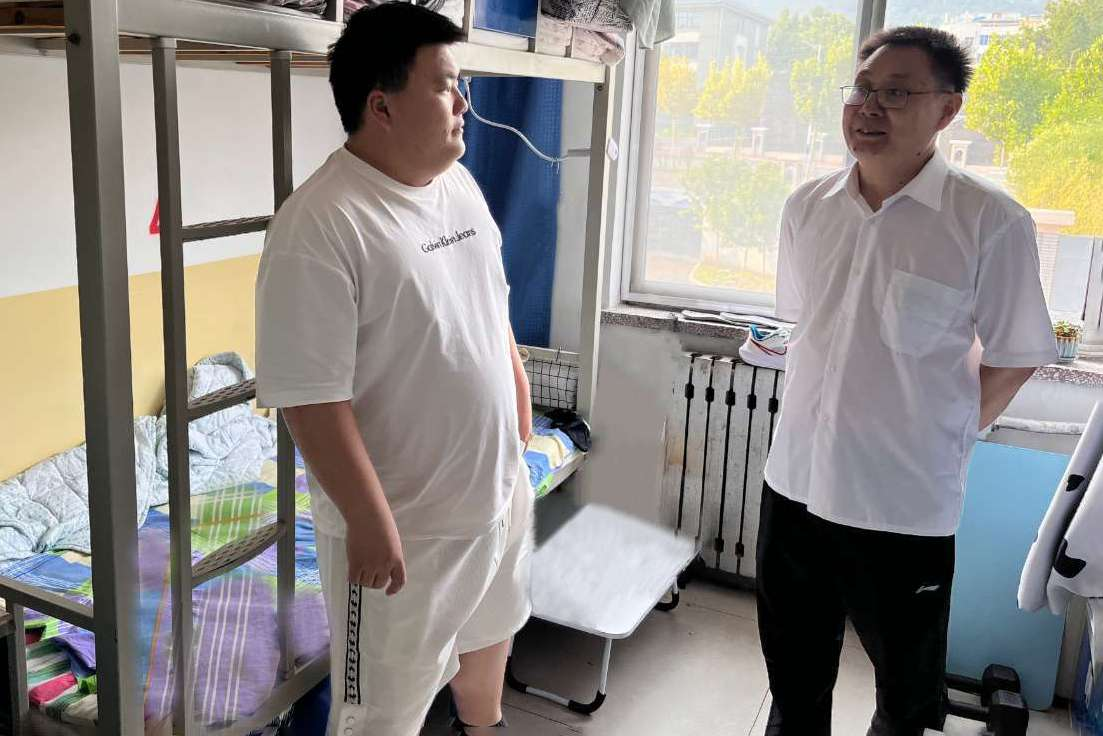 在员工宿舍,王清标与同学们进行了近距离、亲切地交流,详细了解同学们的课程进度、学习情况、生活状况以及临近考试的复习安排和心理状态,广泛听取大家学习、生活各方面的建议,叮嘱同学们天气炎热要注意劳逸结合,养成良好的学习习惯和健康的生活方式。
