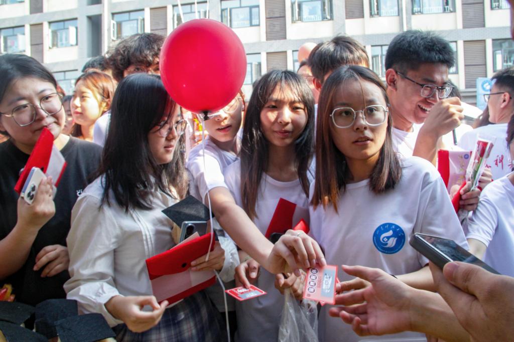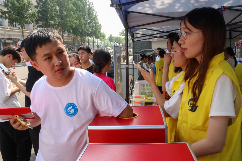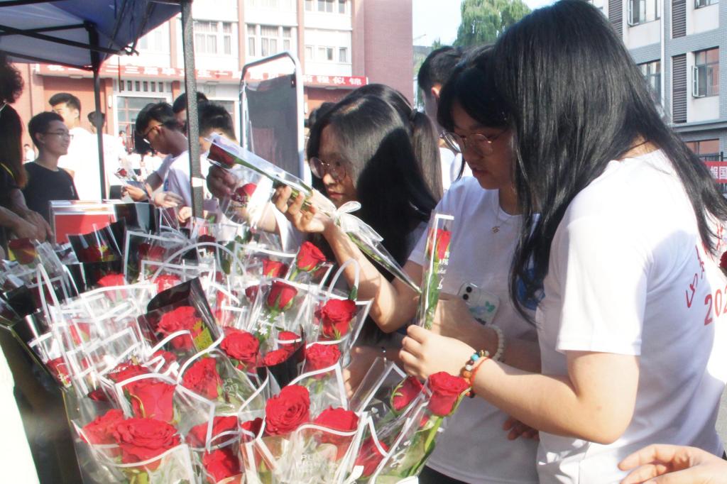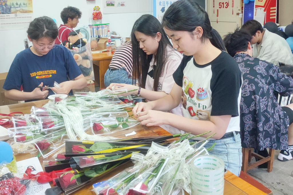 送别花站,愿此去繁花似锦,再相逢依然如故。“祝学长学姐们毕业快乐,一路顺风”“愿前程似锦,鹏程万里”……300支婀娜多姿的玫瑰花,在烈日下熠熠生辉,绽放着独属于科大资源人的浪漫。从前期的挑选、订购,到后期的包装、分发,资源师生精心准备,将真挚的祝福送到每一位毕业生的手中。