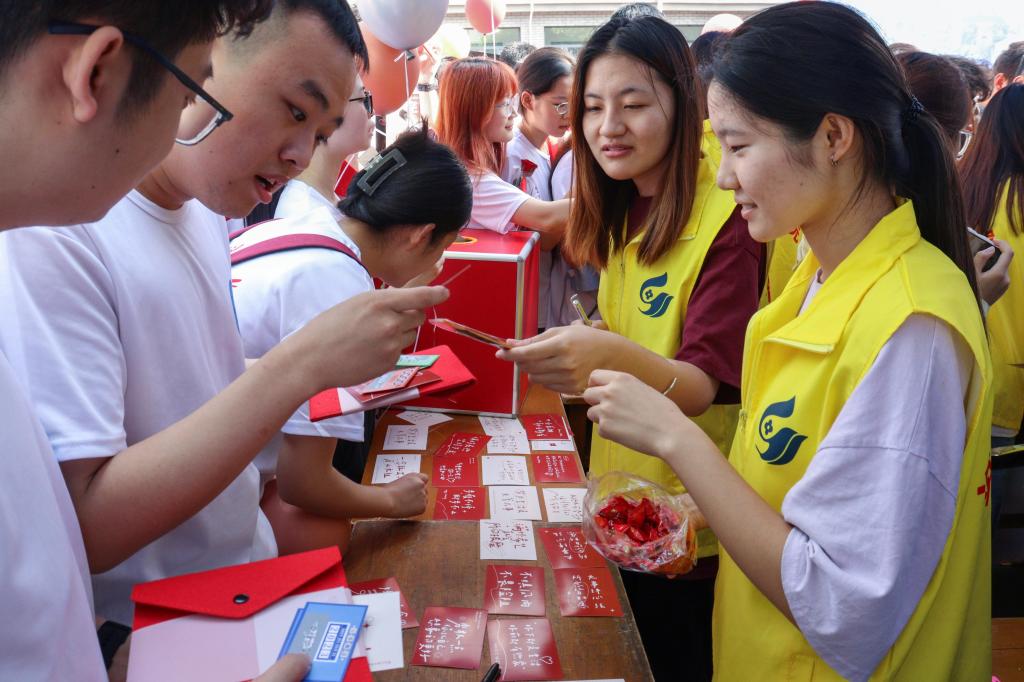 盛夏星散,盲盒寄福。为庆祝毕业生们开启人生新征程,学弟学妹们将真诚满满的毕业祝福封存在定制的盲盒中:明信片上书写着美好祝愿、糖果承载着殷殷心意,让毕业生们收获专属毕业季的甜蜜回忆。