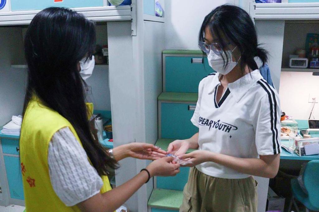 “学姐,毕业快乐,这是您的毕业纪念品。”员工会成员走进毕业生宿舍,送上精美的钥匙扣和温暖的祝福。