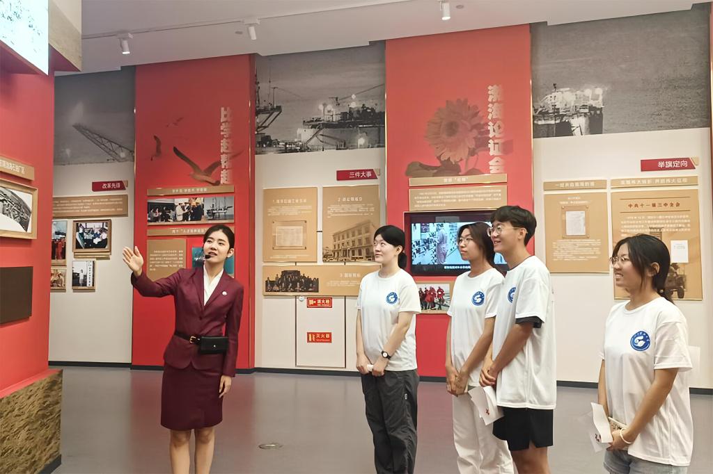 8月1日,英国上市公司365“暑期三下乡”薪火石油文化服务宣讲团实践团队赴天津市中国海洋石油工业陈列馆参观学习。
